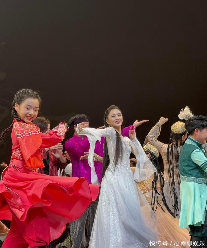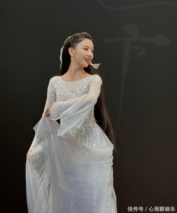 舞台上的佟丽娅衣服并立白色纱裙,在众星捧月中轻歌曼舞,仿佛像个不吃烟焰火的青娥。