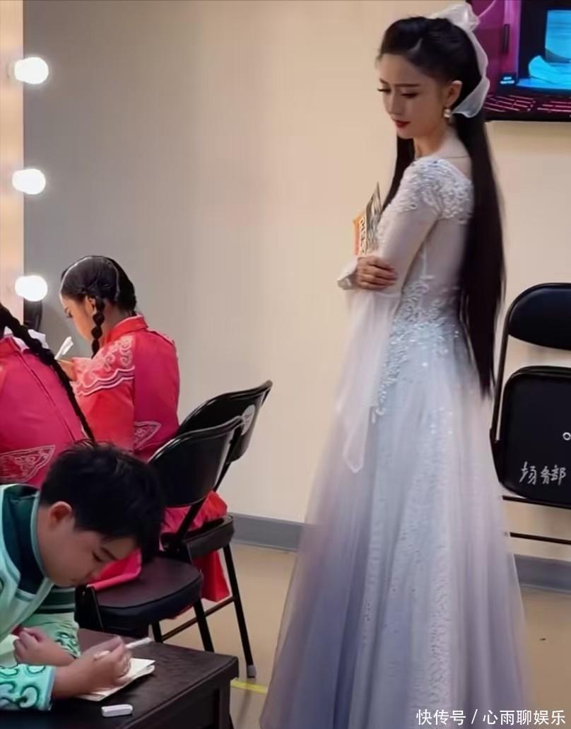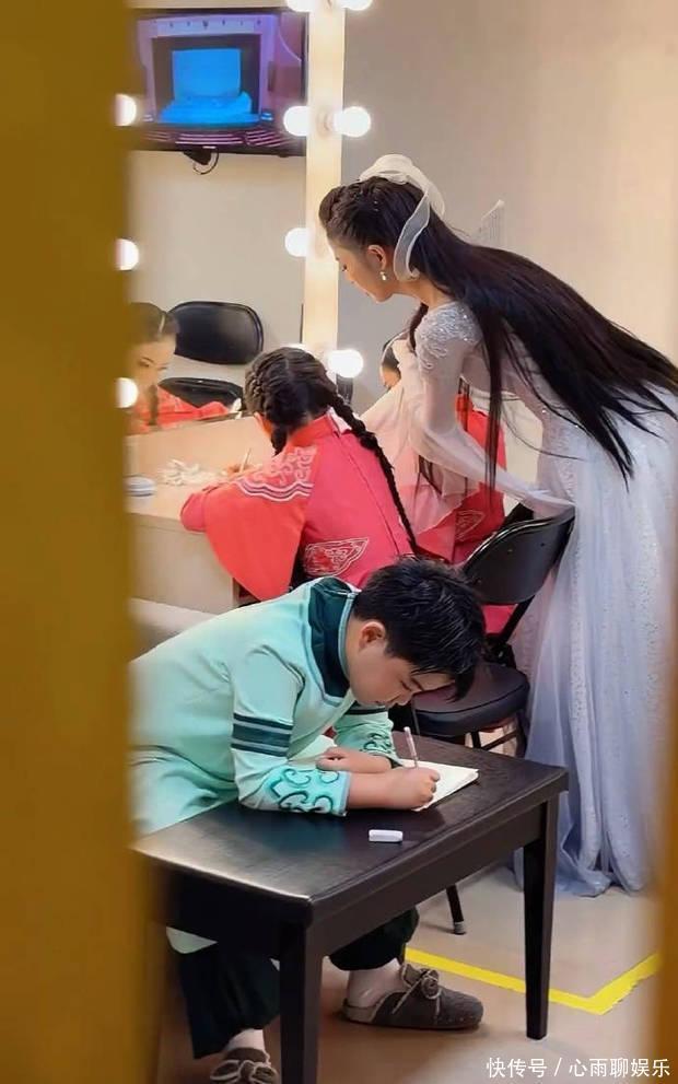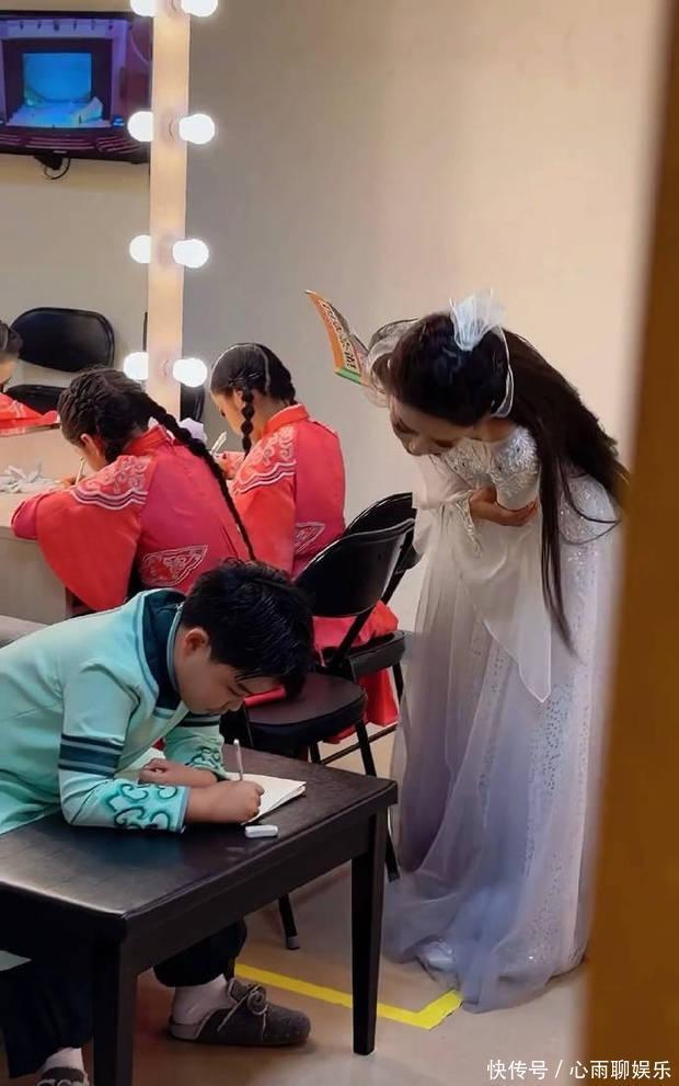 但当镜头一溜,偷拍到佟丽娅在台下休息室的一幕,她依然那身白裙,却拿着孩子的教材,一个词一个词的盯着他们默写生字。