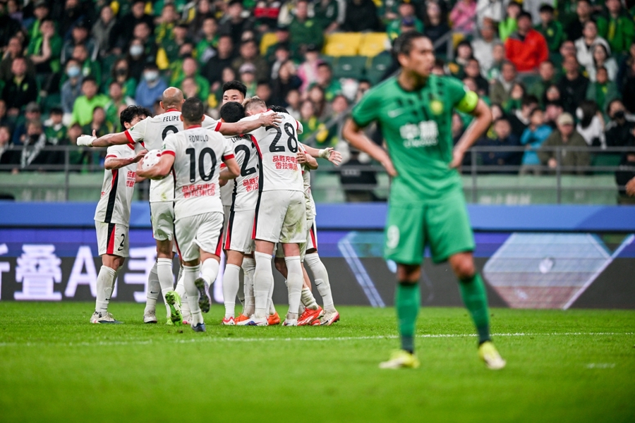 成王人蓉城(白)最终逆转绝杀国安,获得比赛