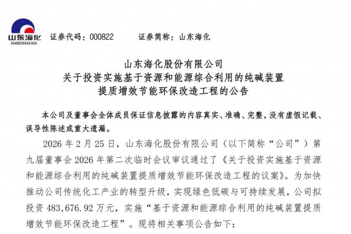 山东海化遴礼聘50亿赌一个明天,至少阐扬它不念念躺平。