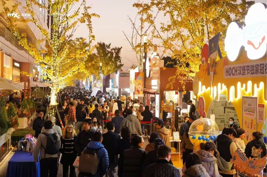 闵行万象城举办的“汉堡市集”东说念主潮涌动。