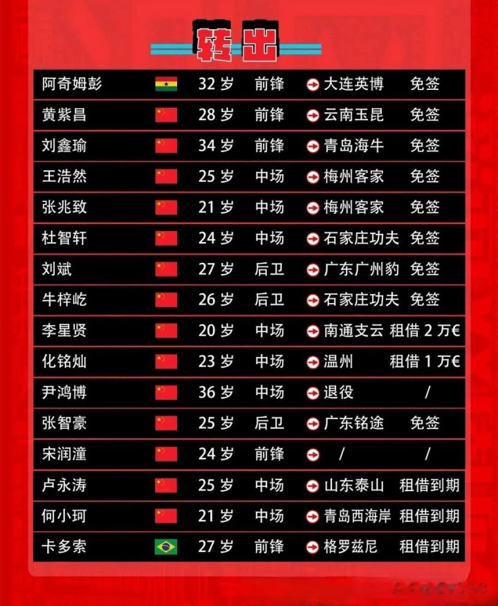 一、转出队员,共16位,威斯人app包括表里援。如下: