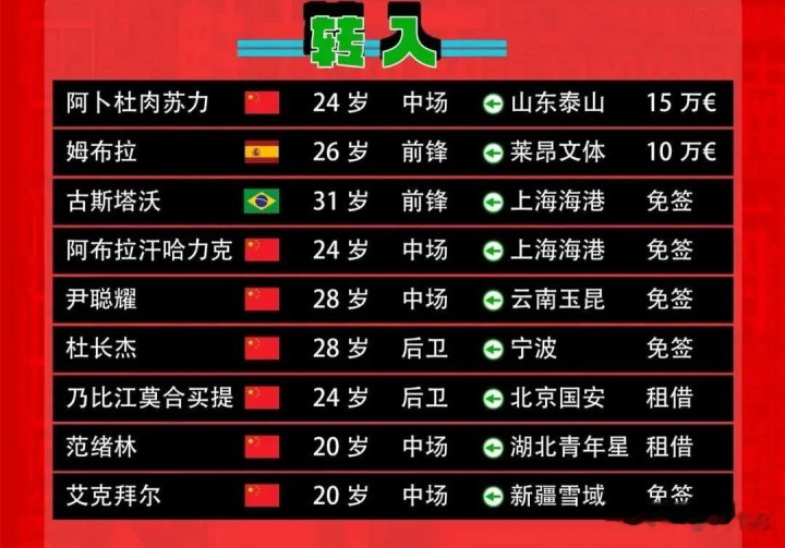 二、转入队员,包括表里援,共9位。如下: