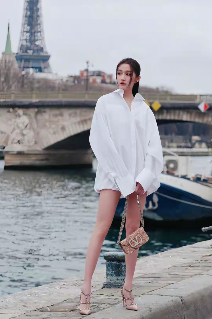 澳门威斯人 关晓彤巴黎的风掠过塞纳河, 也拂过她oversize白衬衫的衣摆