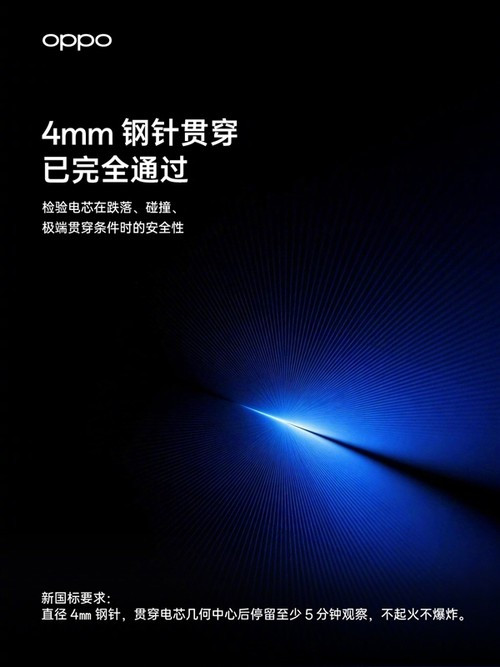 据测算,新国标通过电芯级强制检测门槛,瞻望将平直淘汰行业约60% 分辨规产能,大幅镌汰出动电源动怒、爆炸等恶性安全事故概率。新规出台后,OPPO 当先官宣:2026 新国标电芯已全项通过验收,隐蔽针刺、挤压、过充、高温等沿途条件,并维持软件检察电芯情景。