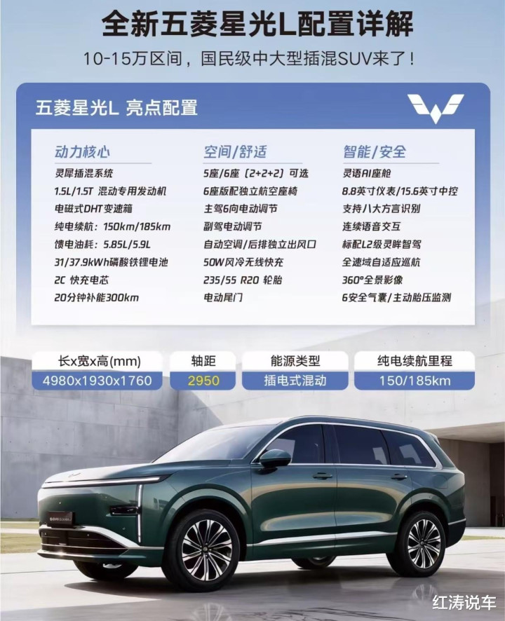 威斯人app 五菱星光L现身, 标配灵语AI座舱+灵眸智驾, 1.5L/1.5T插混能源