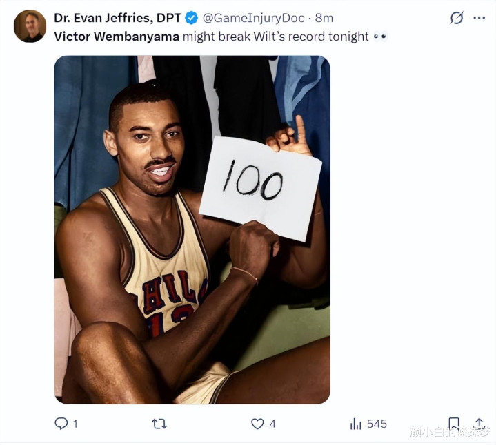 洛杉矶的医学专家埃文-杰弗里斯:这个夜晚的文班亚马就是张伯伦降临。