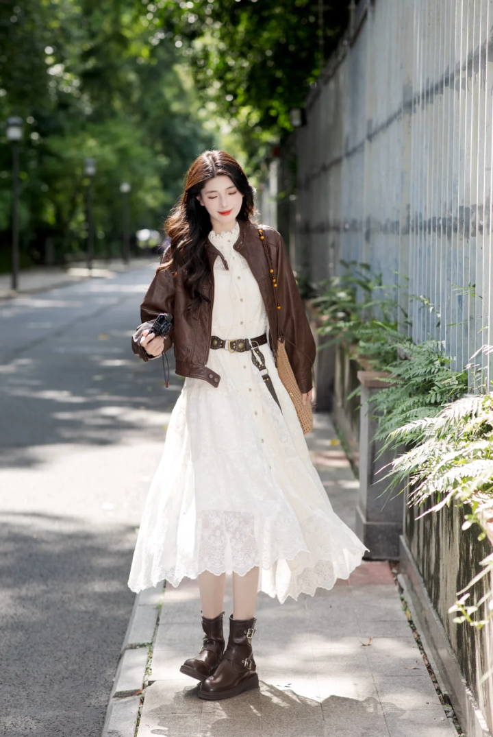 皮夹克詈骂常因循又飒爽的外衣,厚薄适中,既有一定的御寒性又能展现气质,很安妥春季,吸收棕色的短款皮夹克,内搭白色蕾丝连衣裙,威斯人app再系上一根棕色皮质腰带,吸收棕色短靴与皮衣山鸣谷应,帅气飒爽与和煦大气邻接合,两种作风的碰撞便是当卑劣行的娘man风,安妥逛街出行游玩,氛围感拉满!
