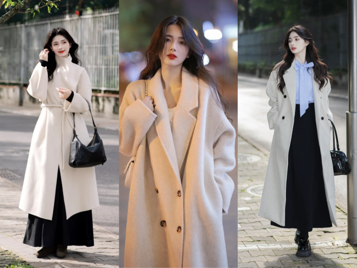 大衣自带优雅高档,裙装又是女性特有的先锋单品,和煦且大方,两者组合特别的文静耐看。