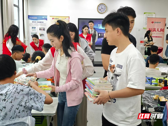 湖南出书集团总部勾通支部后生志愿者为孩子们捐赠了100本优质史籍。