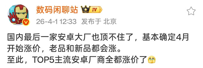 而跟着REDMI的跟进澳门威斯人app,国内TOP5主流安卓厂商已整个加入加价行列。凭据数码博主“数码闲道站”爆料,包括小米在内的国内TOP5主流安卓厂商的老品和新品基本笃定4月起齐会涨,参考OPPO、vivo、iQOO、一加、荣耀等品牌,已发布老品大齐加价500元。这意味着安卓手机阛阓隆重迎来全行业加价周期。